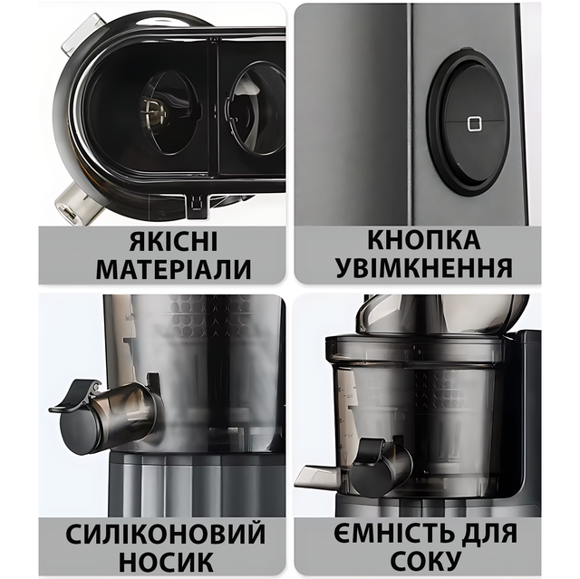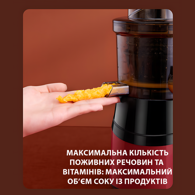 - ✅ Автоматичне викидання м'якоті — жодних ручних чисток, просто насолоджуйтеся соком!