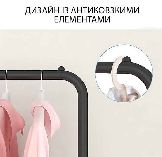- Кількість рівнів зберігання: 2 (верхня перекладина + нижня полиця);