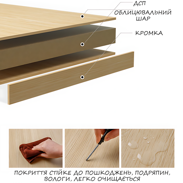 - Надійні матеріали: Дуб і МДФ забезпечують міцність і довговічність меблів;