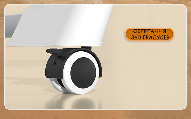- 4 поворотні колеса з фіксаторами — маневровість і безпека.