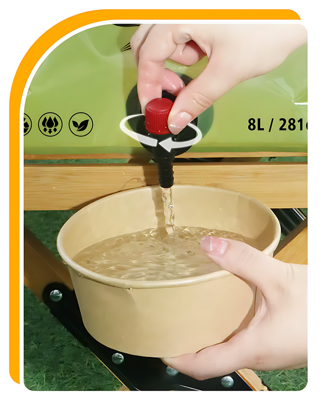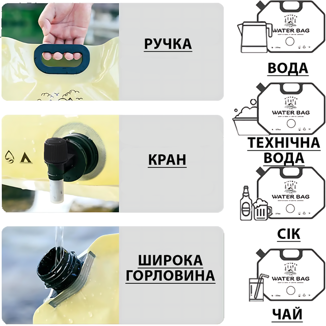 - Місткість 8 л — досить води для кемпінгу, пікніка або екстрених потреб