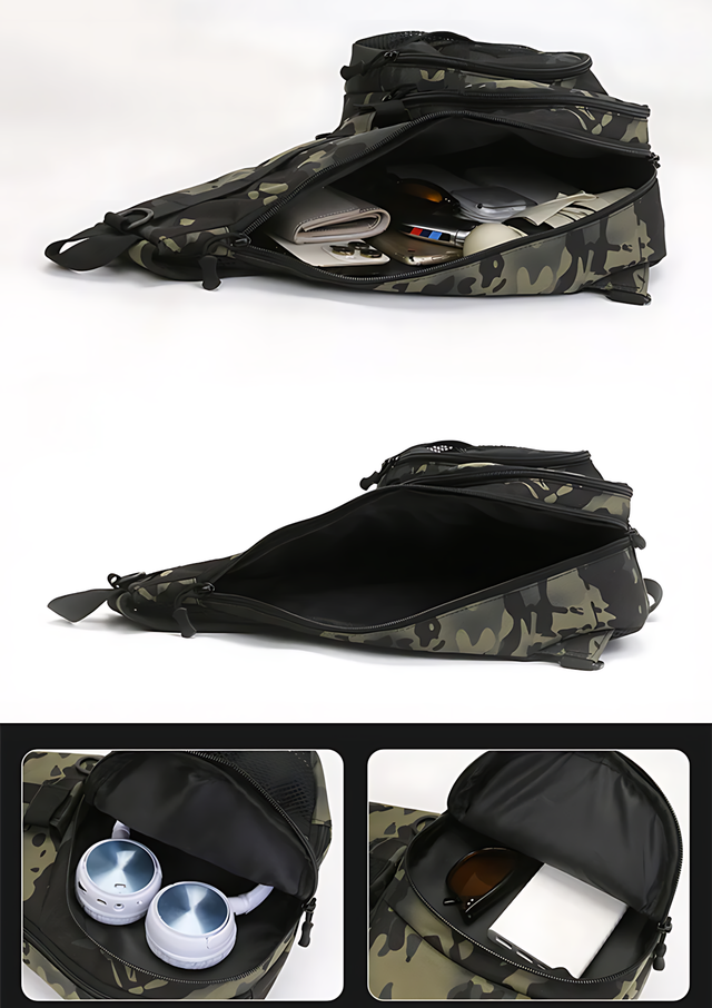 - Способи носіння: через плече, на грудях, за спиною Вибирай, як тобі зручно. Регульований ремінь легко підлаштовується під стиль і ситуацію.