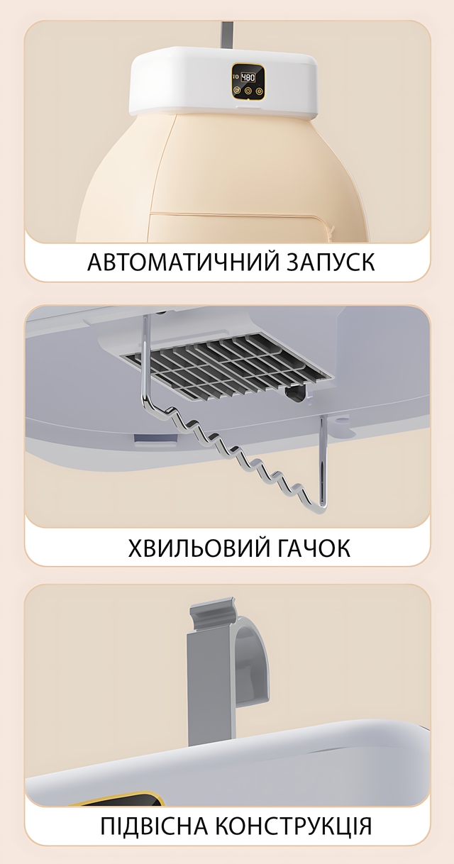 - Розмір сушарки (основний блок): 100 × 285 мм;
