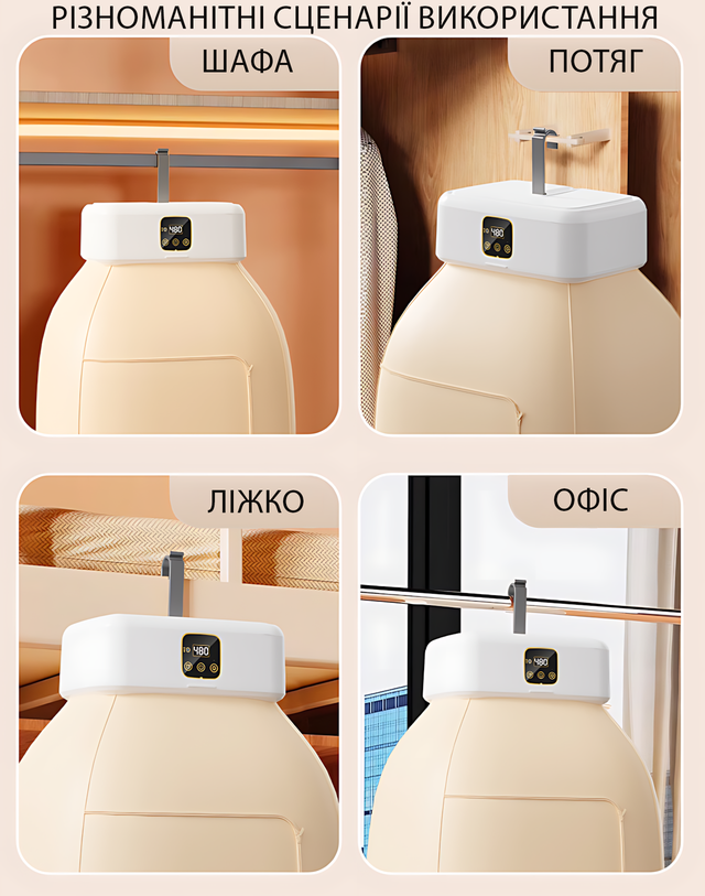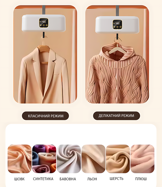 600 ватів потужності та 70 °C стабільного тепла. І ось за 30 хвилин ти вже дістаєш сухі, теплі речі. Без пересушування, без заломів, без нервів. У неї 2 режими під будь-які тканини. Від делікатних до "після залу".