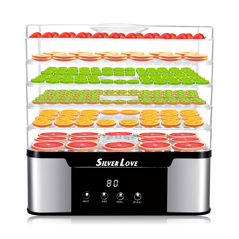Сушарка дегідратор для фруктів, овочів, грибів і трав Silver Love RB-912, 1000 Вт, 5 піддонів, 35–70 °C, чорний
