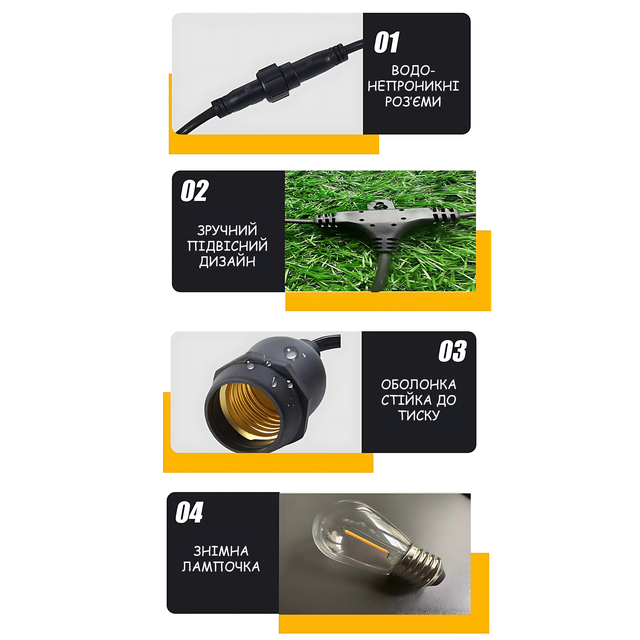 - 🌦 Вуличний вологозахист — стійка до дощу, вітру та перепадів температури.