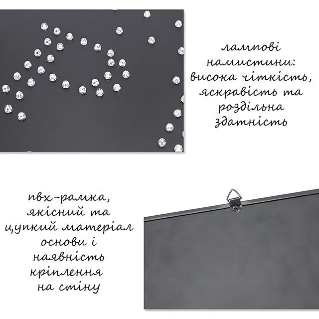 - 🖼 Компактний і стильний дизайн (48×25 см, товщина 2 см).