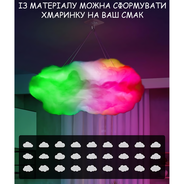 Світильник-хмарина DIY Cloud Atmosphere Light MA704 • Підвісний LED світильник у формі хмари з RGB-підсвіткою, керуванням через Bluetooth і пультом • Музичний нічник з ефектом хмари для спальні, дитячої, вітальні