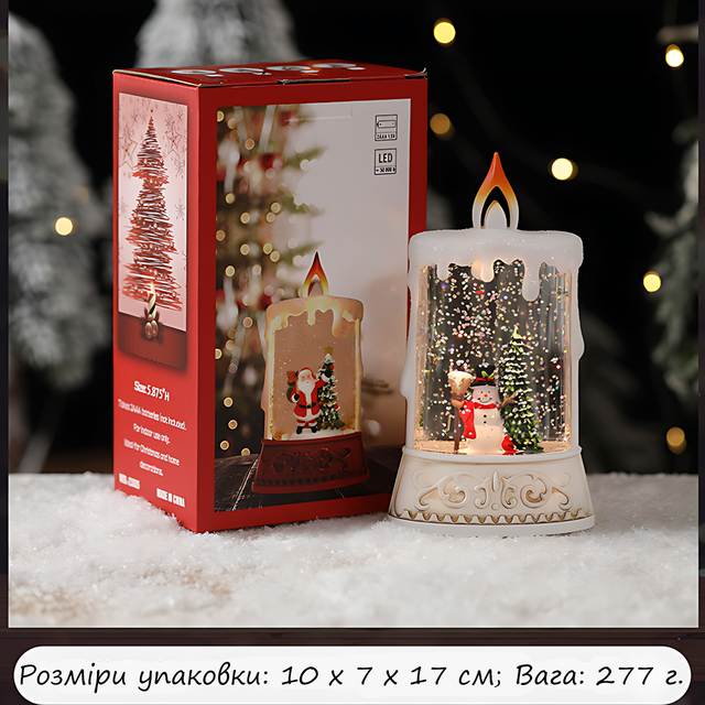 Святковий нічник XMAS WDL 23005C виконаний у формі елегантної свічки з святковим орнаментом, наповнений чарами зимових свят. Усередині нічника розміщена фігурка святково вбраного сніговика з ялинкою, оточена блискучими конфетті, які створюють ефект снігової хуртовини. Вбудоване біле підсвічування підкреслює деталі композиції, додаючи мерехтливого шарму та затишного світла. Цей нічник стане вишуканим прикрасою для святкового інтер’єру та оригінальним подарунком, підкреслюючи настрій урочистості. Нічник компактний і автономний, що дозволяє одразу насолоджуватися його чарами.