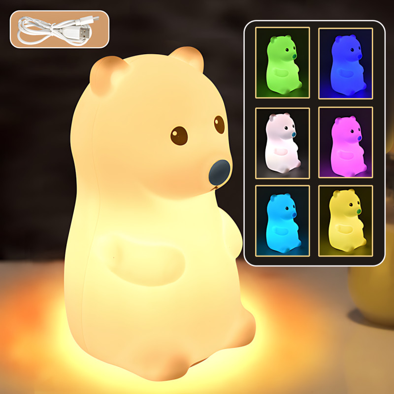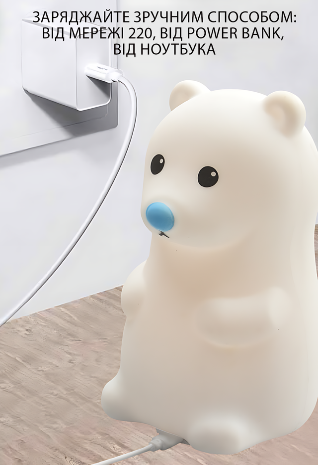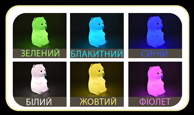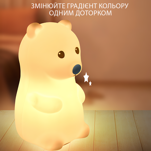 Силіконовий нічник "Ведмежатко" із сенсорним керуванням, RGB-світлом і вбудованим акумулятором 1200 мА·год, 17 см