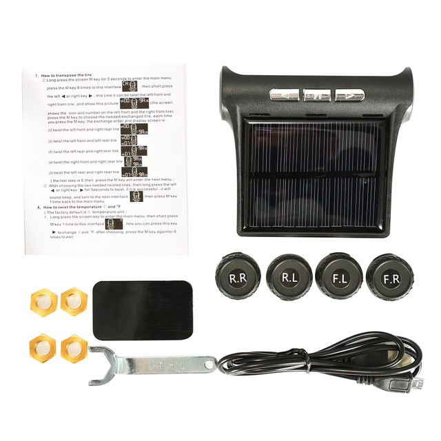 Сонячна система контролю тиску та температури в шинах із зовнішніми датчиками пропонує зручний спосіб моніторингу стану шин вашого автомобіля. Завдяки можливості заряджатися від сонячної енергії, вона не потребує додаткового живлення. Висока точність вимірювань тиску та температури кожного колеса забезпечує надійний контроль, а регульована яскравість дисплея забезпечує комфортне читання даних навіть за яскравого сонячного світла. Пристрій попереджає про високий/низький тиск і температуру, забезпечуючи вам додаткову безпеку на дорозі. Якщо датчик утрачений або вийшов із ладу, його можна легко замінити. Ця система контролю тиску та температури в шинах — незамінний аксесуар для кожного водія, який прагне підтримувати оптимальні параметри шин свого автомобіля для безпечної та комфортної поїздки.