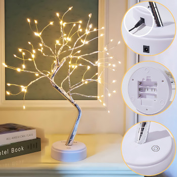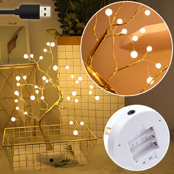 Настільна лампа нічник дерево-бонсай SFK-26, LED світильник "Дерево срібне - краплі", USB + АА 3 шт.