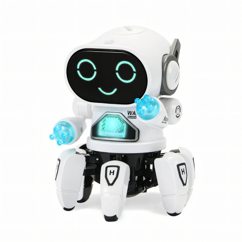 Танцюючий робот-іграшка, електричний мультяшний робот із шістьма ніжками ZR142, музика та світло, 3 АА Білий