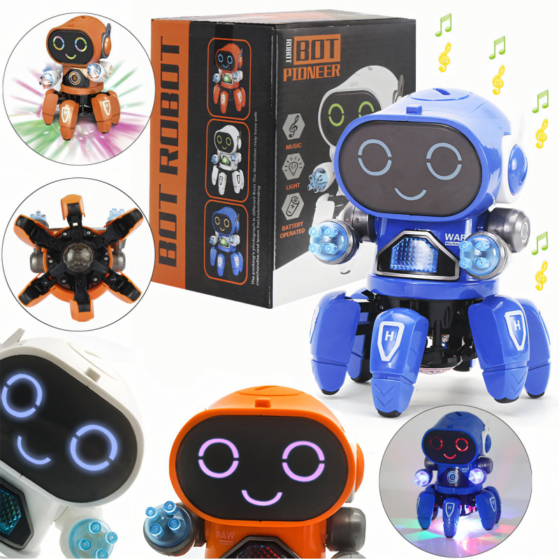 Танцюючий робот-іграшка, електричний мультяшний робот із шістьма ніжками ZR142, музика та світло, 3 АА