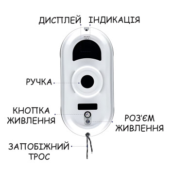 Розумний робот-мийник вікон 5600 Па, 80 Вт, 4 насадки, пульт ДК, акумулятор + мережа, автоутримання,..