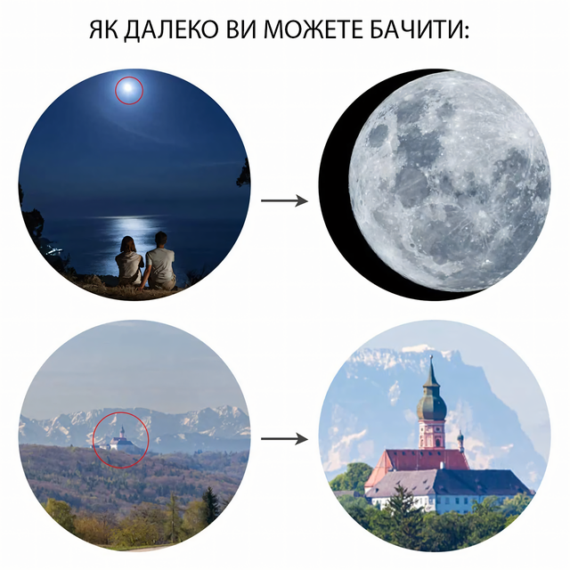 - Максимальне збільшення 90x: Завдяки цьому телескопу ви зможете збільшити об'єкти до 90 разів, розкриваючи для себе дивовижні деталі космічних тіл і структур;