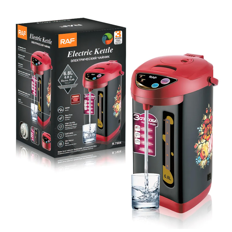Термопот електричний RAF R.7904 з обертанням на 360 градусів, 6.8 л, 800 Вт