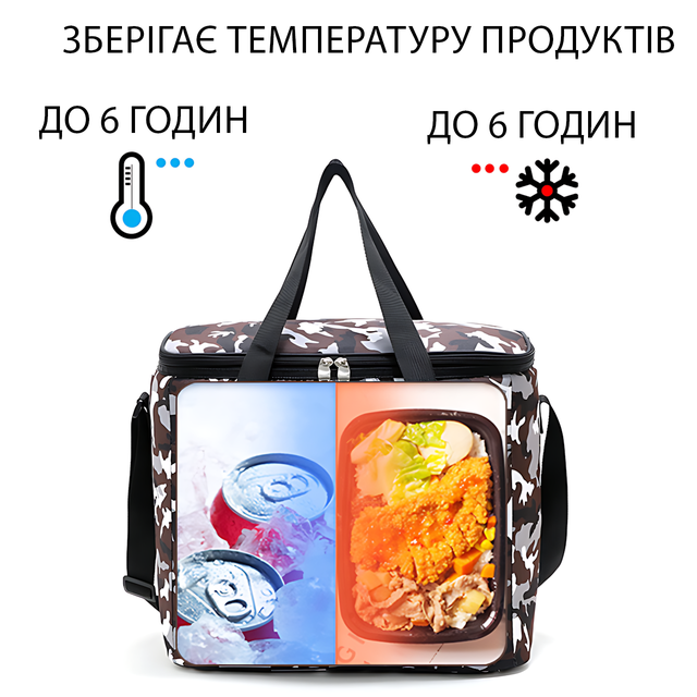 Термосумка GP 4334, 13 л, камуфляж, 30×20×21 см, сумка-холодильник із ручками та ременем, для їжі, пікніків, авто та школи, зберігає холод/тепловий до 6 год