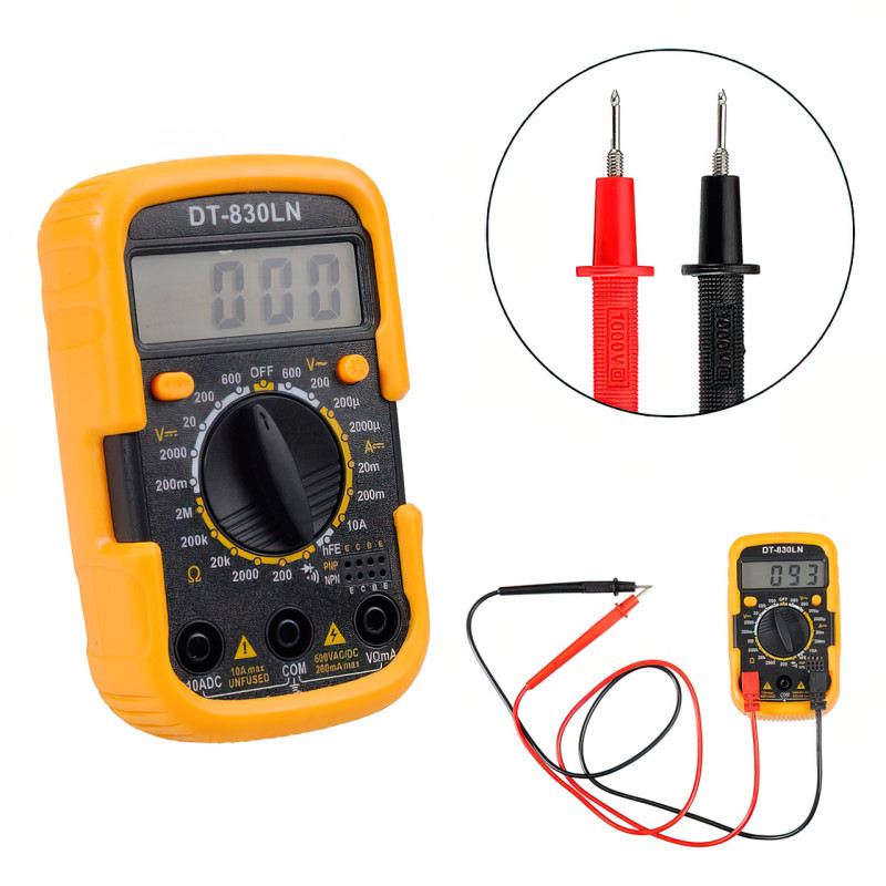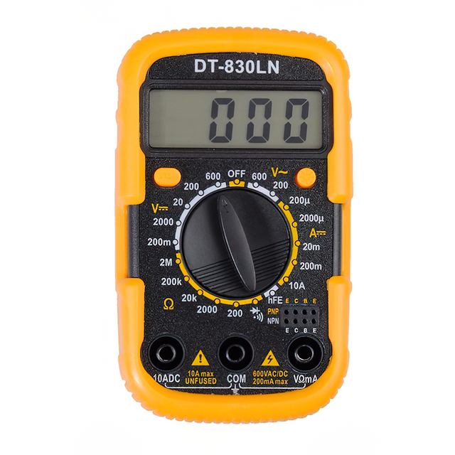 UK-830LN — це невеликий за габаритами прилад, призначений для вимірювання: напруги постійного струму, змінного струму, сили постійного струму, опору, а також перевірки функціонування транзисторів і діодів. Керування девайсом здійснюється за допомогою центрального перемикача, обертанням якого перемикаються одиниці вимірювання. Девайс обладнаний захисним корпусом і підсвіткою дисплея. Мультиметри будуть незамінною річчю для власників автомобілів, майстрів, що працюють на виїзді: лінійним монтерам зв'язку.