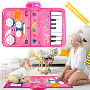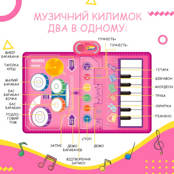Розвивальний музичний килимок 2-в-1 Musical Play Mat, піаніно + барабани, 80×50 см, записування і ві..