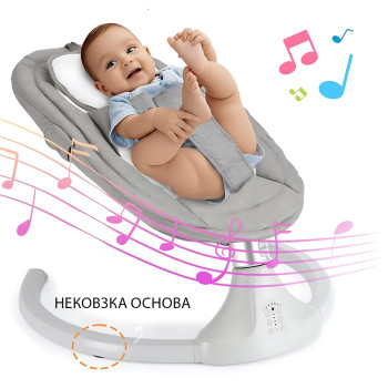 Колисальний центр шезлонг-гойдалка для новонароджених 0+ до 10 кг із москітною сіткою, музикою, тайм..