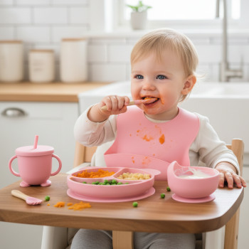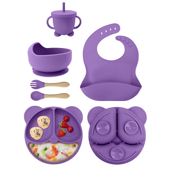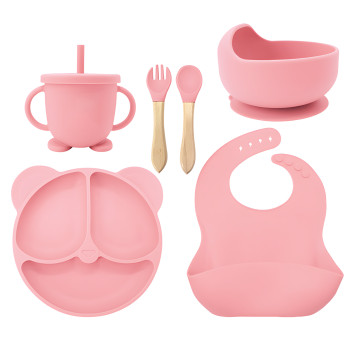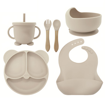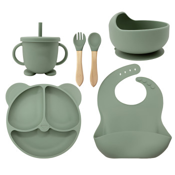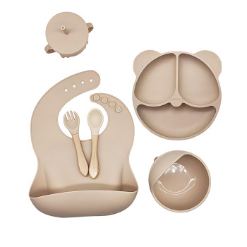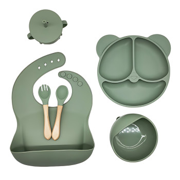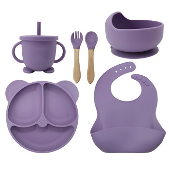 Дитячий силіконовий набір посуду 6 предметів: тарілка на присосках з 3 секціями Ø19 см, супова таріл..
