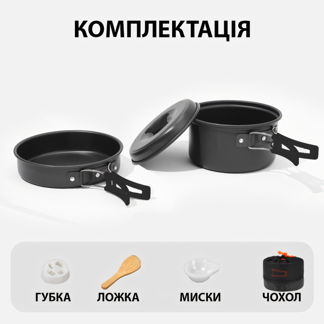 Туристичний набір посуду DS-200, на 1-2 осіб, з анодованого алюмінію, комплект похідний, кемпінговий