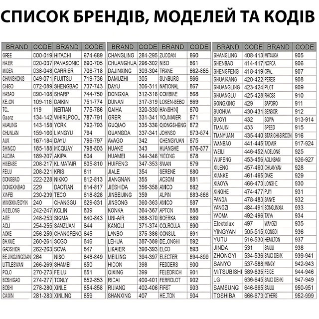 - ???? Сумісний з понад 1000 моделей кондиціонерів