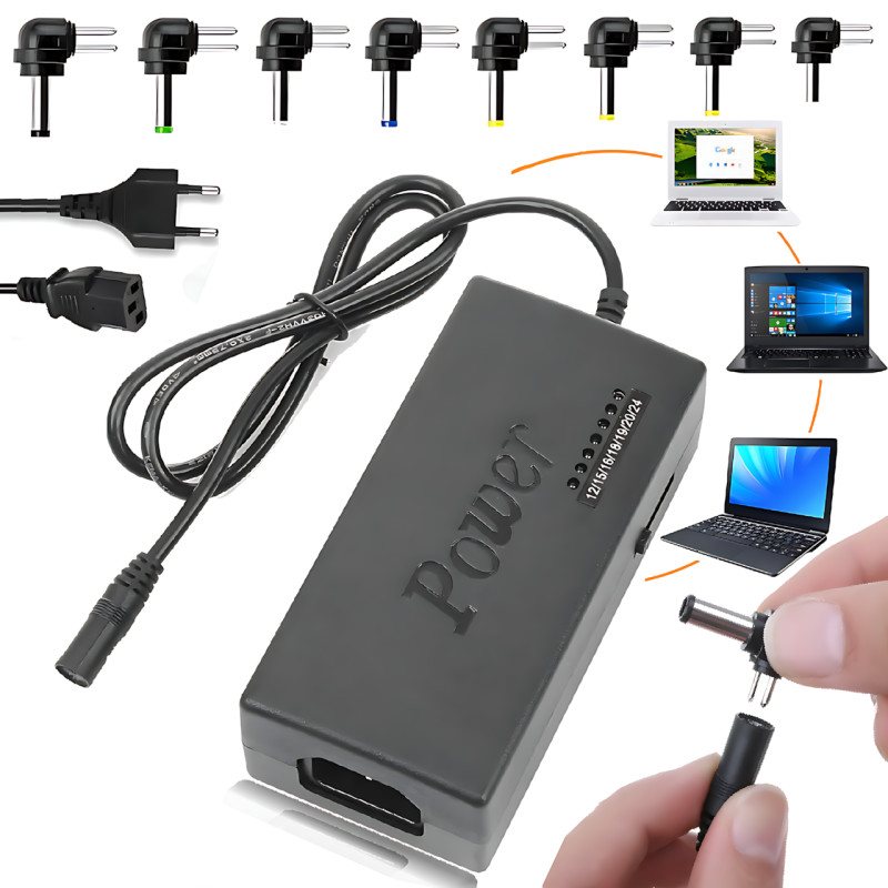 Універсальний зарядний пристрій для ноутбуків — це потужне та багатофункціональне рішення для забезпечення безперебійної роботи ваших пристроїв. Цей адаптер поєднує в собі міцність, компактність і універсальність, завдяки чому ідеально підходить для використання вдома, в офісі або в дорозі. Набір із 8 змінних штекерів забезпечує сумісність із більшістю моделей ноутбуків, а регульована вихідна напруга дає змогу адаптувати пристрій під різні вимоги техніки.