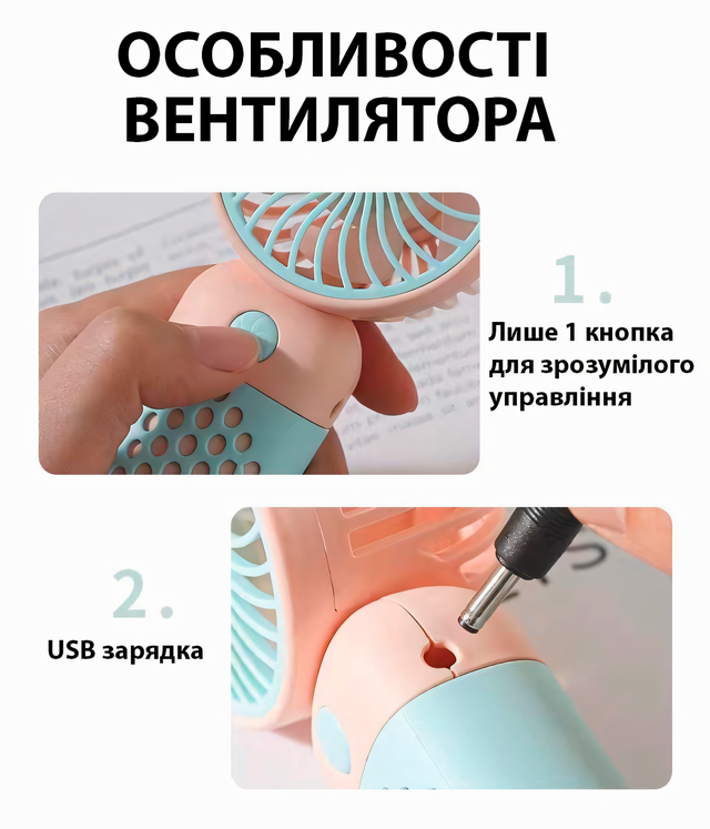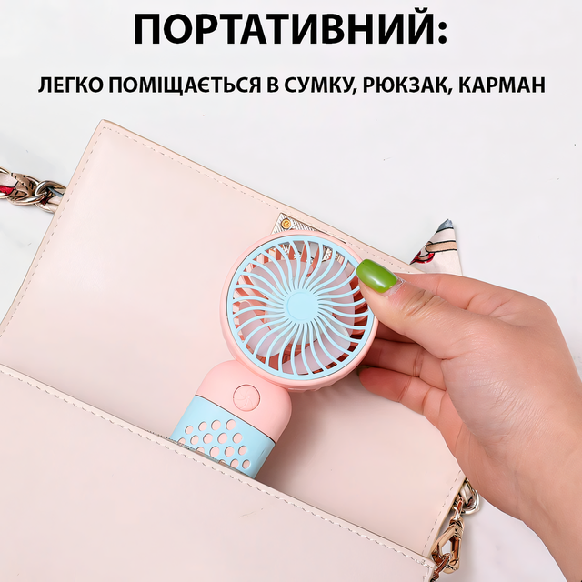 USB Вентилятор Z8, ручний з акумулятором, настільний вентилятор 3,7 Вт, 1 швидкість, 45 мм, рожево-блакитний