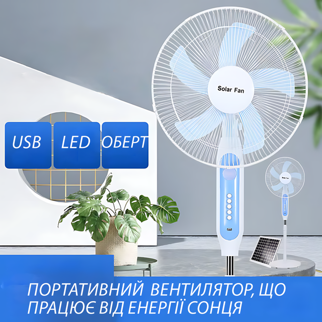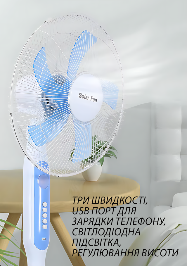 ???? Підлоговий вентилятор Solar Fun MNJ-188 із сонячною панеллю — дихай вільно, навіть коли немає електрики!