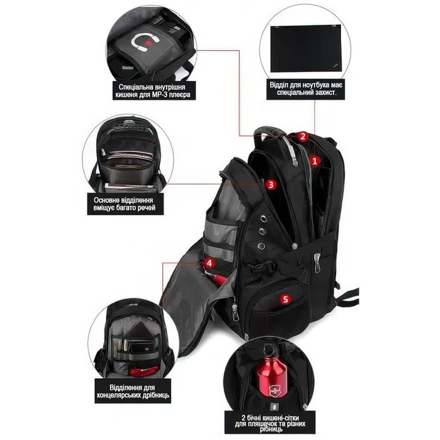Водонепроникний швейцарський рюкзак, міський рюкзак з ортопедичною спинкою та штекером для навушників