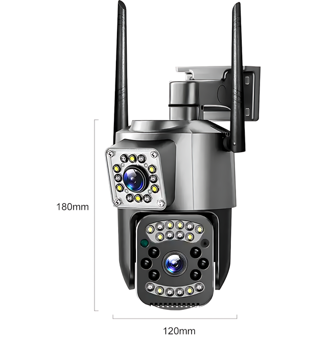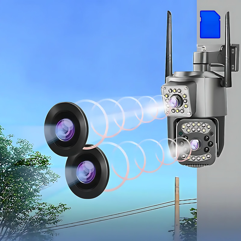 - Подвійні лінзи: Камера обладнана двома об'єктивами з двома сенсорами, що забезпечує детальне спостереження як поблизу, так і на дальніх відстанях;