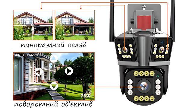 Wi-Fi камера відеоспостереження 5K, вулична IP-камера Wonsdar PW12-5K з трьома об'єктивами та двостороннім звуком