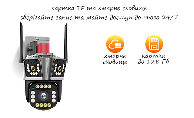 - Зберігання: TF-карта до 128 ГБ, хмарний сервіс (оплачується);