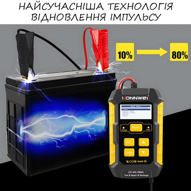 - Функции Konnwei: Виявлення + ремонт + зарядка;