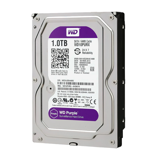 Накопичувальний диск від компанії WD Purple створений для безперервної роботи в системах відеоспостереження 24/7. Пристрій призначений для якісного запису та відтворення в умовах підвищених температур. Жорсткий диск функціонує у цифрових та аналогових відеосистемах. За допомогою технології AllFrame зменшено втрату кадрів, покращено відтворення та збільшено кількість підтримуваних дискових відсіків за рахунок роботи команд з обробки потокових даних протоколу АТА. Накопичувач підтримує одночасну роботу із 32 камерами високої чіткості.