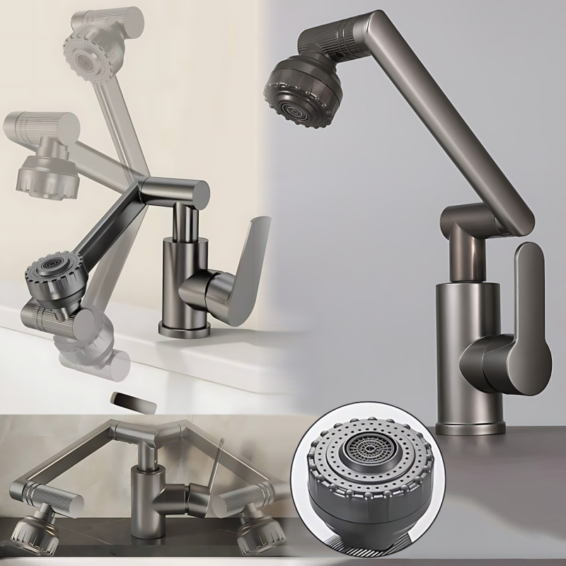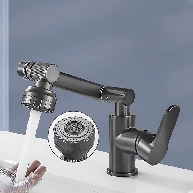Змішувач для раковини faucet AND938 телескопічний поворотний 361 мм, одне захоплювальне, латунь, матове комбіноване покриття, монтаж на 1 отвір, сріблясто-сірий