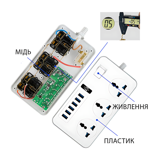 - ✅ Выключатель на корпусе — один клик, и всё выключено, без лишних манипуляций с вилками.