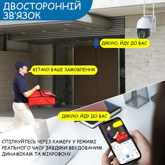 Благодаря поворотному механизму PTZ камера охватывает большую зону наблюдения и позволяет управлять направлением обзора удалённо — прямо со смартфона. Видео передаётся в HD-разрешении 1296P, обеспечивая чёткую картинку днём и ночью.