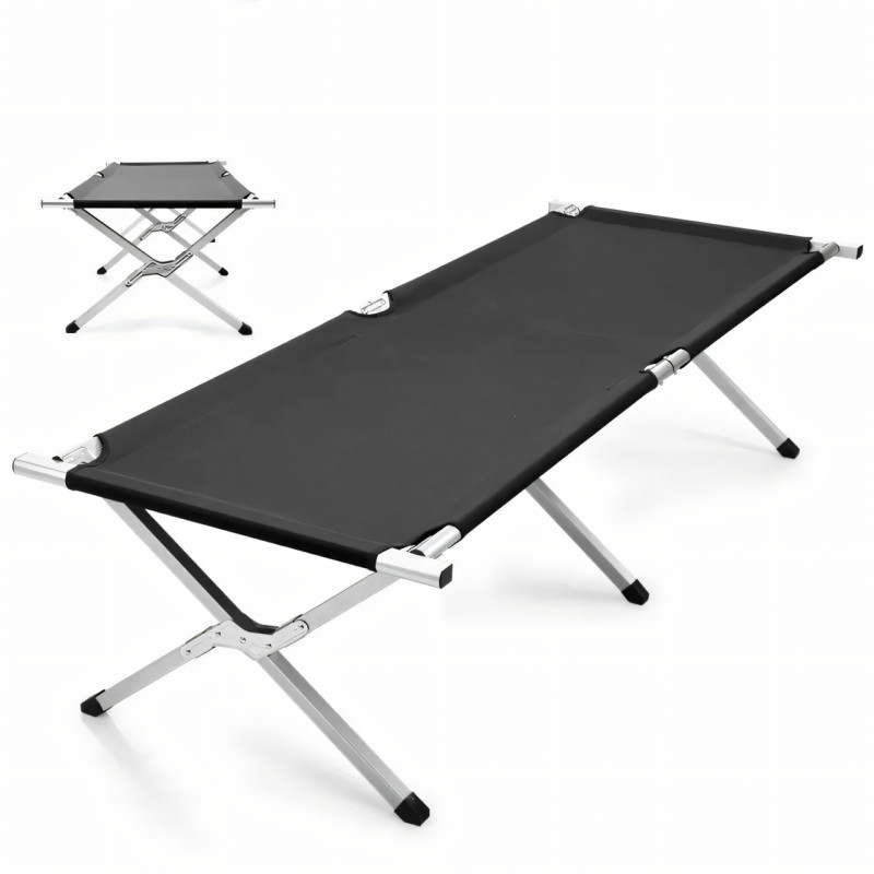 Уличная портативная складная кровать для кемпинга, садовая стальная кровать для сна, раскладушка 190х64 см Черный