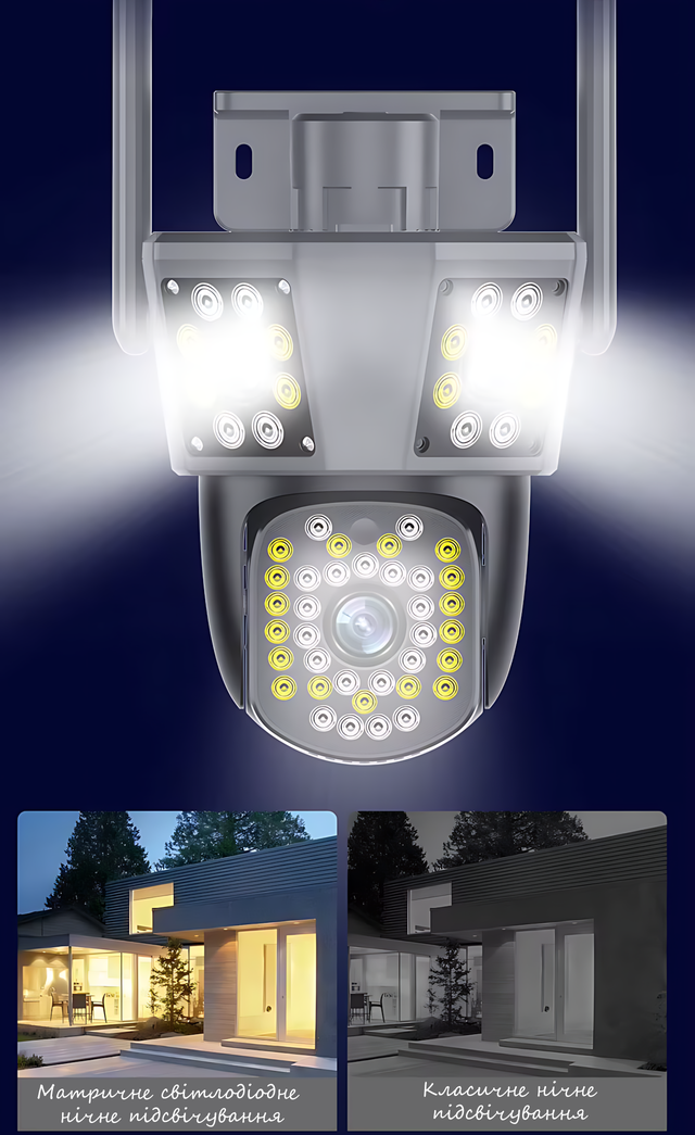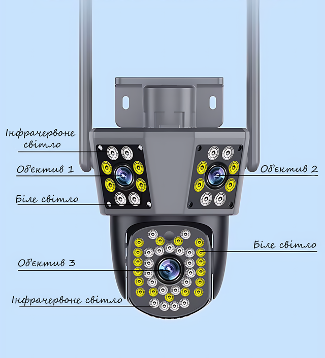 Уличная Wi-Fi IP камера 3-Lens IPC360 (3 объектива, цветное ночное видение, двусторонний звук, IP66, WiFi+RJ45, Humanoid Tracking, Dual Storage)