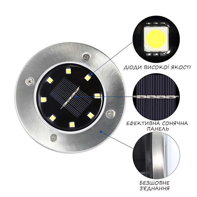 Садовый фонарь на солнечной батарее - это стильное и удобное решение для освещения вашего двора или сада. Модель Solar Underground Light создана для интеграции в любой ландшафтный дизайн, изготовлена из нержавеющей стали и оснащена прочной фаской из закаленного стекла. Благодаря высокому классу защиты IP65, фонарь устойчив к любым погодным условиям и выдерживает механические нагрузки. Время зарядки солнечной батареи составляет всего 6-7 часов, обеспечивая освещение на 5 ночей без дополнительной подзарядки. Этот фонарь идеально подходит для использования в садах, на дорожках, газонах, а также около дома, на работе или в ресторанах. Установка очень проста — не требуется проводка, просто выкопайте отверстие и вставьте светильник.