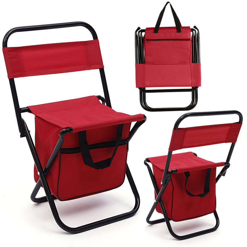 Универсальный раскладной стул "Кенгуру" с сумкой и спинкой, для рыбалки, сада, 35 х 28 х 60 см, 600D Oxford Красный
