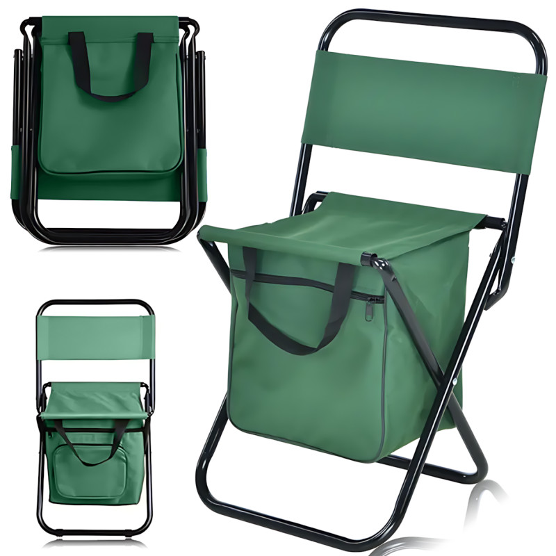Универсальный раскладной стул "Кенгуру" с сумкой и спинкой, для рыбалки, сада, 35 х 28 х 60 см, 600D Oxford Зеленый