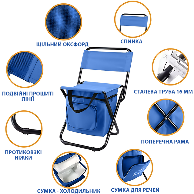 - Тип изделия: Раскладной рыбацкий стул с сумкой и спинкой;