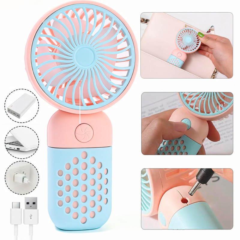USB Вентилятор Z8, ручной с аккумулятором, настольный вентилятор 3,7 Вт, 1 скорость, 45 мм, розово-голубой