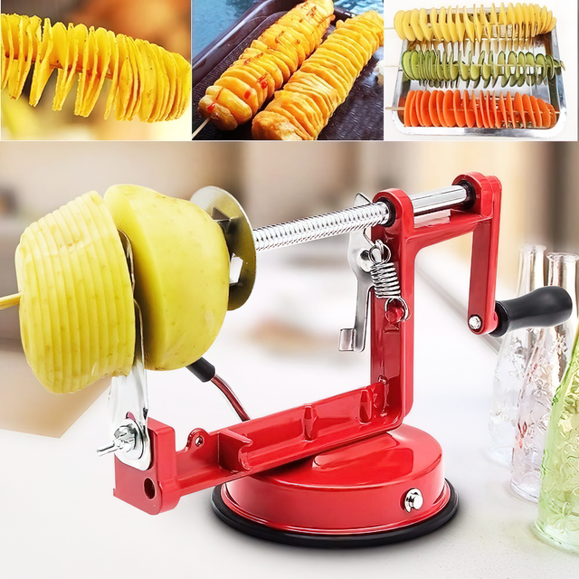 Приспособление подходит для мытья в посудомоечной машине, обеспечивая легкость в уходе. Овощерезка спирального типа создает креативные спиральные формы овощей и фруктов, идеальные для украшения блюд или приготовления оригинальных картофельных чипсов. Кольцевидный нож обеспечивает нарезку толщиной 2 мм, оптимальной для жарки во фритюре.