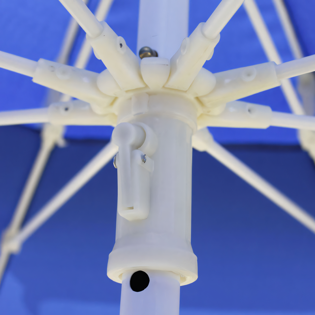 - Рекомендации по установке: Хотя зонтик не имеет собственного основания, его можно легко закрепить на тяжелой подставке или вставить в стол для патио, обеспечивая стабильность в ветреную погоду;