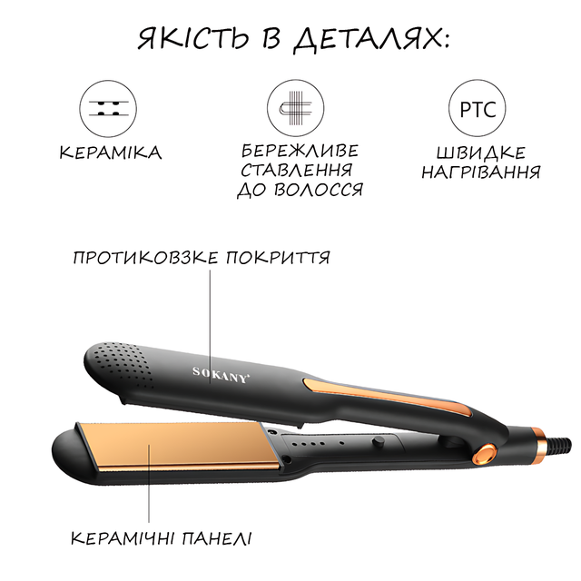 Утюжок SOKANY SK-993, выпрямитель стайлер для укладки волос с керамическими пластинами и сенсорным управлением